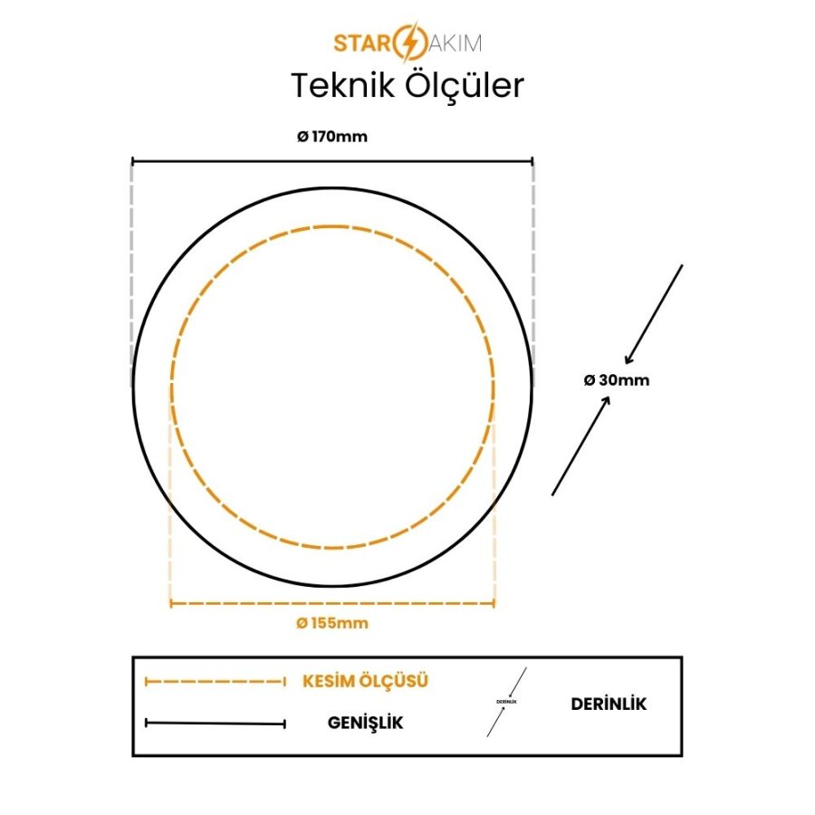 • Kesim Ölçüsü: Ø155 mm