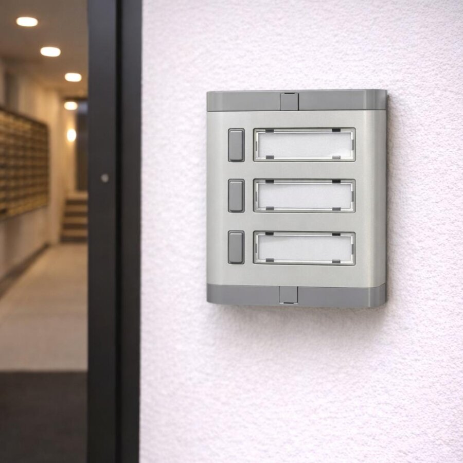 Ürün üzerinde bulunan 3 adet bağımsız zil butonu, farklı daire veya alanlar için ayrı çağrı hattı oluşturmayı mümkün kılar. Bu sayede küçük apartman girişlerinde, ofis katlarında veya çoklu kullanım alanlarında ziyaretçilerin doğru noktaya kolayca ulaşması sağlanır. Düzenli ve profesyonel bir giriş çözümü sunarak kullanım kolaylığı sağlar.
