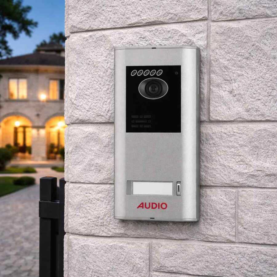 Audio 001456 Villa Set İlave Zil Paneli, villa ve geniş yaşam alanlarında kullanılan görüntülü diafon sistemlerine ek olarak tercih edilen, dış ortam koşullarına dayanıklı ve uzun ömürlü bir zil panelidir. Mevcut villa setinize kolaylıkla entegre edilerek giriş kontrolünü daha pratik ve konforlu hale getirir.