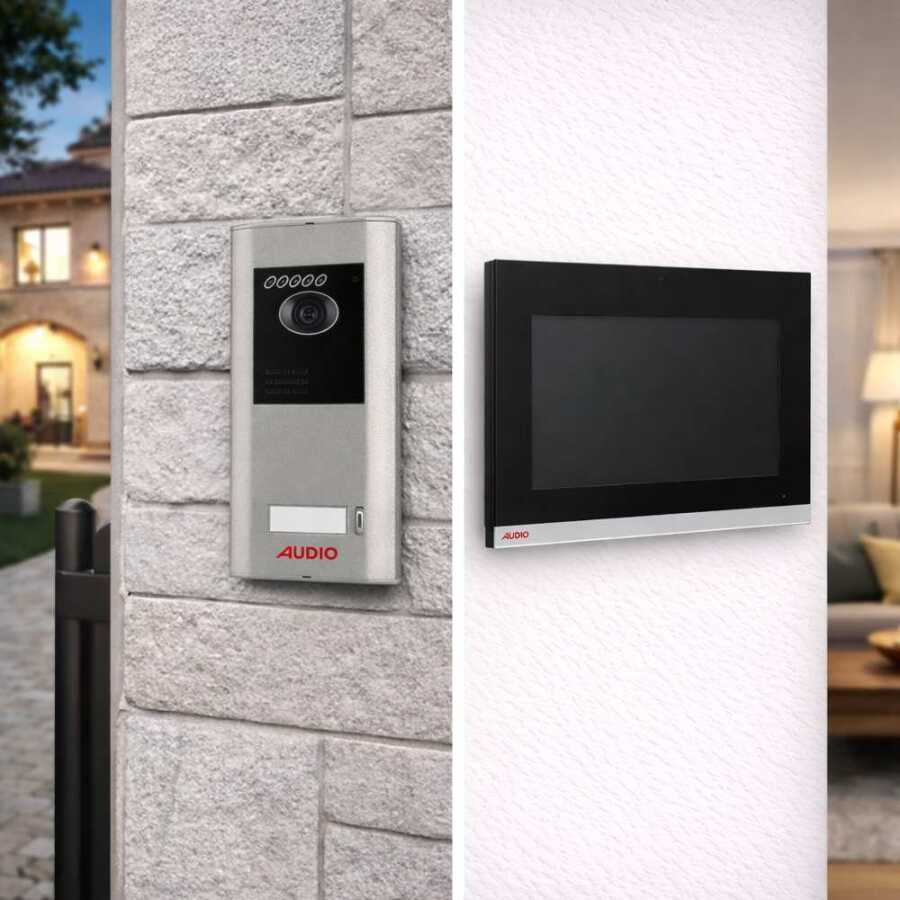 Audio 001465 10.1 inç Siyah Bus Plus Dokunmatik Ekranlı Görüntülü Villa Set, villa ve müstakil konutlarda giriş kontrolünü daha güvenli ve konforlu hale getirmek için geliştirilmiş, yüksek çözünürlüklü görüntüleme ve alarm entegrasyonu sunan gelişmiş bir görüntülü diafon sistemidir. Şık siyah renkli tasarımı, modern yaşam alanlarına uyum sağlarken geniş ekranı ve kullanıcı dostu menüsüyle pratik bir kullanım deneyimi sunar.