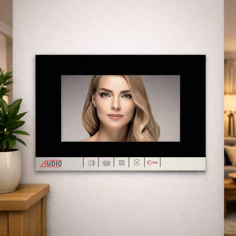 Audio 001189 Bus Plus, şık siyah tasarımı ve 7 inç geniş ekranı ile apartman, site ve rezidanslarda güvenli iletişim sağlayan gelişmiş bir görüntülü diafon modelidir. Kullanıcı dostu yapısı ve mekanik butonları sayesinde kolay kullanım sunarken, sunduğu fonksiyonlarla hem günlük yaşamı kolaylaştırır hem de güvenliği artırır.
