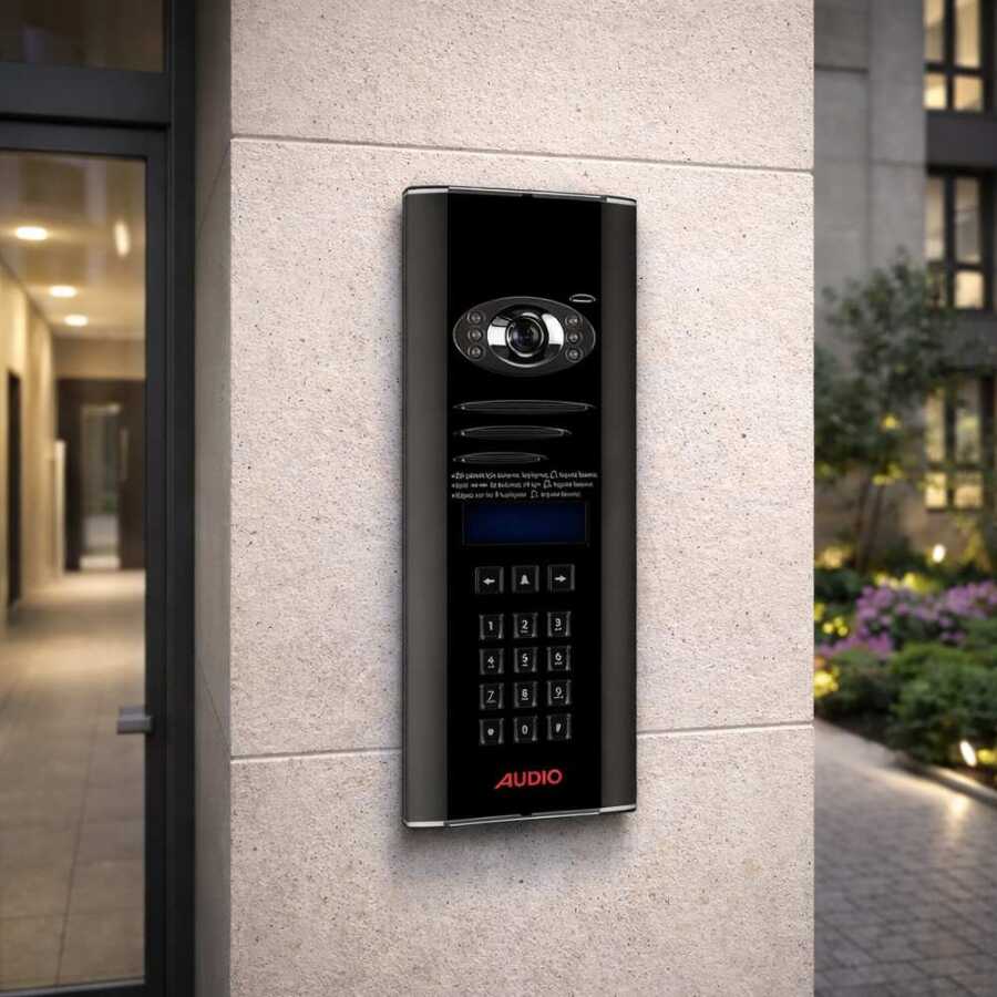 Audio 008312 Dijital Kameralı Zil Paneli, apartman, site ve işyeri girişlerinde güvenli ve pratik kullanım sunan gelişmiş bir zil paneli modelidir. Üzerindeki 2 satır LCD ekran sayesinde daire/isim bilgileri net şekilde görüntülenirken, isim arama özelliği ile ziyaretçiler doğru daireye hızlıca ulaşabilir.