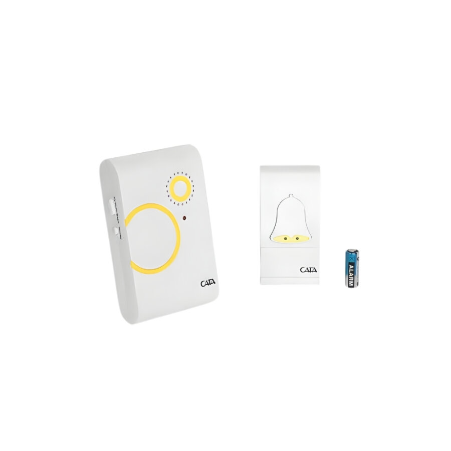 Cata CT-101, RF (radyo frekansı) teknolojisiyle çalışan kablosuz yapısı sayesinde ev ve iş yerlerinde pratik kullanım sunan uzaktan kumandalı zil modelidir. Kablo çekmeye gerek kalmadan kolayca kurulabilir; farklı alanlarda esnek kullanım imkânı sağlayarak günlük hayatı kolaylaştırır.