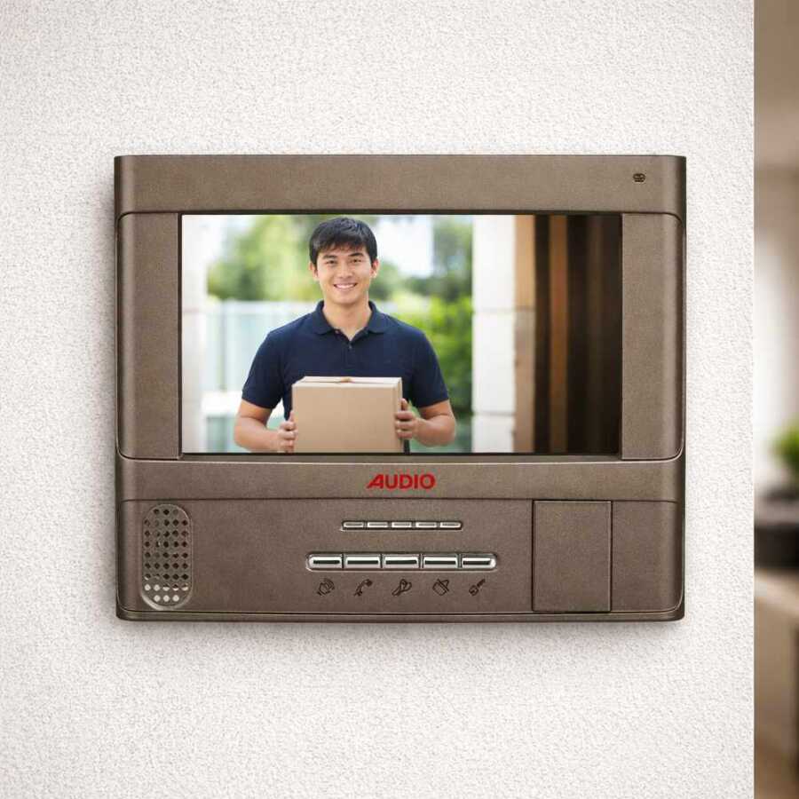 Site, apartman ve rezidans girişlerinde güvenliği üst seviyeye taşıyan 7” TFT Renkli Görüntülü Diafon Monitör, tek tuşla arama, görüntüleme ve kapı açma gibi pratik fonksiyonlarıyla maksimum kullanıcı konforu sağlar. Push Button Talk (Bas-Konuş) özelliği sayesinde net ve hızlı iletişim kurabilir, aynı anda farklı giriş noktalarını yönetebilirsiniz.